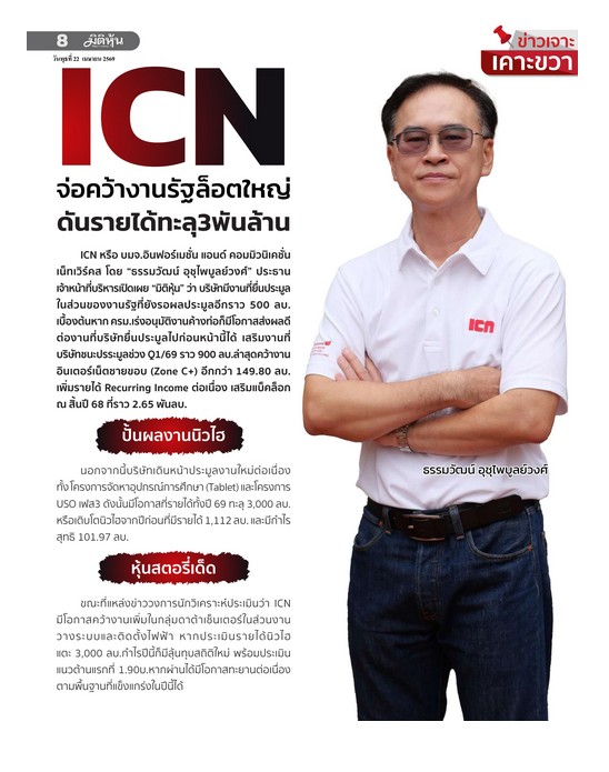 ICN จ่อคว้างานรัฐล๊อตใหญ่ดันรายได้ทะลุ3พันล้าน